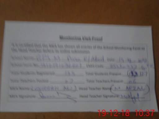 | Attendance Register | Head Teacher | MEA with School | Visit Proof |
