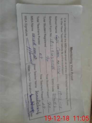 | Monitoring Date: 19-12-2018 | Start Time: 19-12-2018 10:29 AM | End Time: 19-12-2018 11:06 AM | Name of MEA: NA**** AH**** BN**** | |