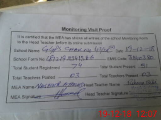 | EMIS Code: 31140380 | Name of School: GGPS CHAK NO 43/3-R W | |||