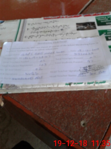 | Attendance Register | Head Teacher | MEA with School | Visit Proof |