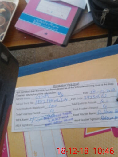 | Attendance Register | Head Teacher | MEA with School | Visit Proof |