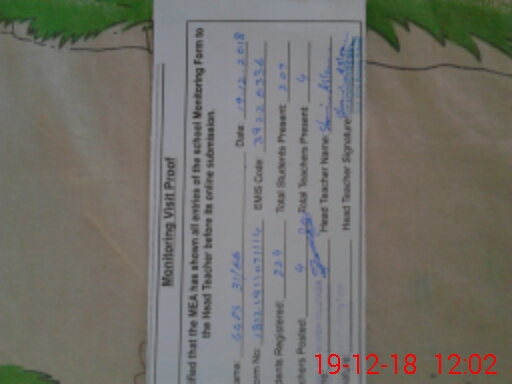 | Attendance Register | Head Teacher | MEA with School | Visit Proof |
