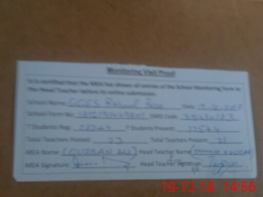 | Attendance Register | Head Teacher | MEA with School | Visit Proof |