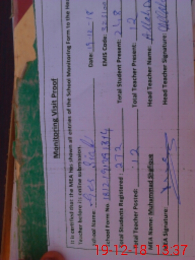 | Certified that this School was Inspected by the Undersigned MEA/DMO Today and the Information Stated Above is as Per Record. | |||||
