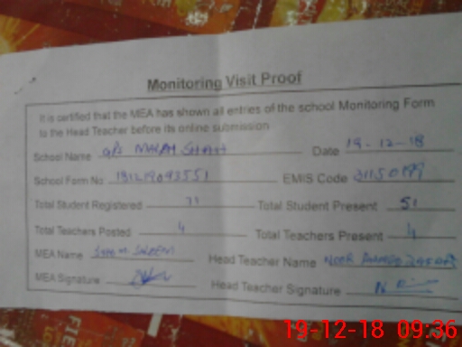 | EMIS Code: 31150199 | Name of School: GPS MALE SHAH | |||
