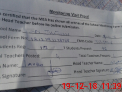 | Attendance Register | Head Teacher | MEA with School | Visit Proof |