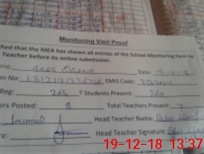 | Attendance Register | Head Teacher | MEA with School | Visit Proof |