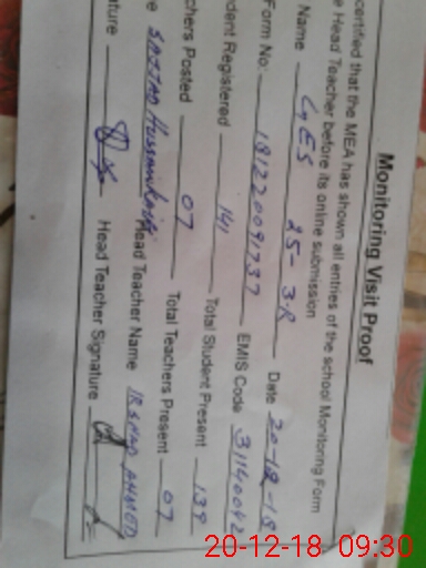 | EMIS Code: 31140042 | Name of School: GES CHAK NO. 25/3-R | |||
