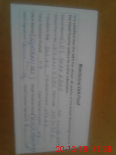 | Total no. of Classrooms: 3 No. of Classrooms Used for Teaching: 3 No. of Classrooms Storing Old Furniture, FTBs, etc: 0Comments if Any: 0 |