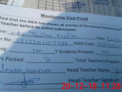 | Certified that this School was Inspected by the Undersigned MEA/DMO Today and the Information Stated Above is as Per Record. | |||||