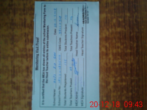 | Attendance Register | Head Teacher | MEA with School | Visit Proof |