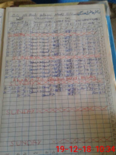| CNIC | Full Name | Designation | R/C | Absence During Last Calender Month |