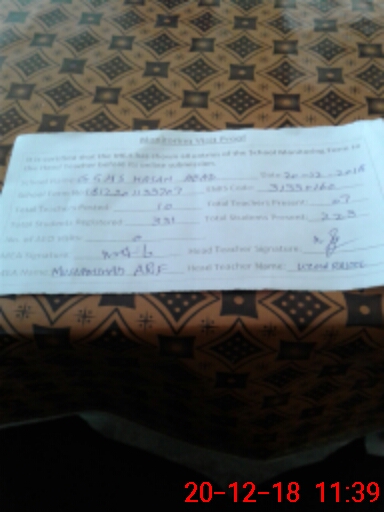 | Attendance Register | Head Teacher | MEA with School | Visit Proof |