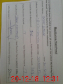 | Attendance Register | Head Teacher | MEA with School | Visit Proof |