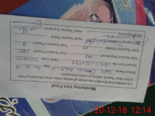 | School Visited by School Health & Nutrition Supervisor (No. of Visits) | Name1: | SHAHID NAWAZ | Name2: | Nil | |