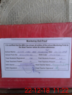 | Certified that this School was Inspected by the Undersigned MEA/DMO Today and the Information Stated Above is as Per Record. | |||||