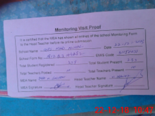 | Attendance Register | Head Teacher | MEA with School | Visit Proof |