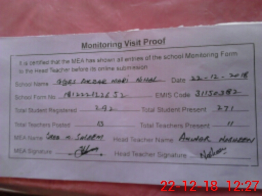| Certified that this School was Inspected by the Undersigned MEA/DMO Today and the Information Stated Above is as Per Record. | |||||
