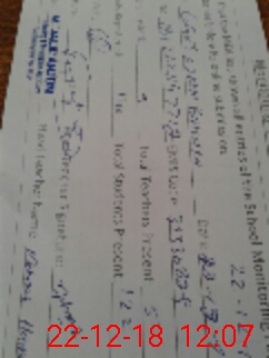 | School Visited by School Health & Nutrition Supervisor (No. of Visits) | 1 | Name1: | SHAZIA KARIM | Name2: | |