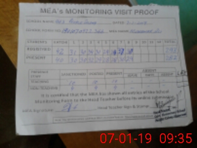 | Attendance Register | Head Teacher | MEA with School | Visit Proof |