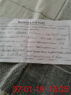 | Name: MU**** MO**** Designation: (School Headmaster's/Headmistress's) PST Phone/Cell Number: 03**** |