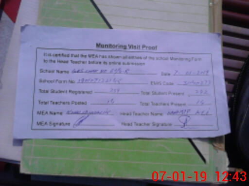 | Certified that this School was Inspected by the Undersigned MEA/DMO Today and the Information Stated Above is as Per Record. | |||||