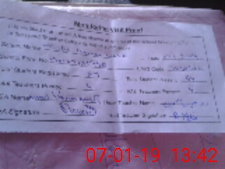 | Name: SA**** SH**** Designation: (School Headmaster's/Headmistress's) PST Phone/Cell Number: 03**** |