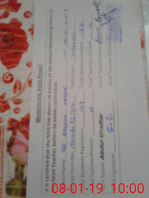 | Certified that this School was Inspected by the Undersigned MEA/DMO Today and the Information Stated Above is as Per Record. | |||||