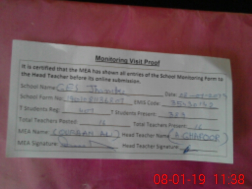| Certified that this School was Inspected by the Undersigned MEA/DMO Today and the Information Stated Above is as Per Record. | |||||