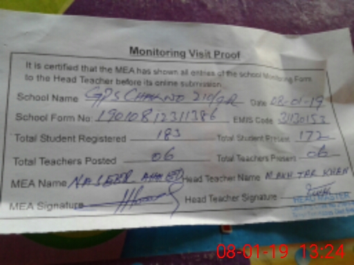 | EMIS Code: 31130153 | Name of School: GPS CHAK NO.210/9-R | |||
