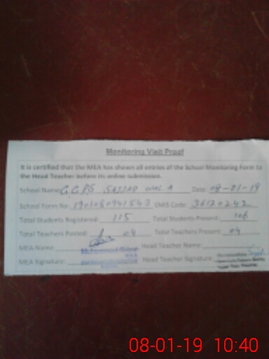| Attendance Register | Head Teacher | MEA with School | Visit Proof |