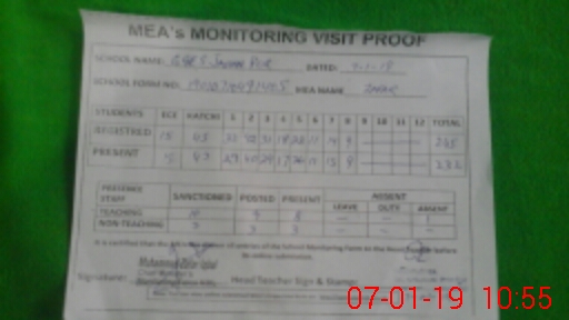 | Certified that this School was Inspected by the Undersigned MEA/DMO Today and the Information Stated Above is as Per Record. | |||||