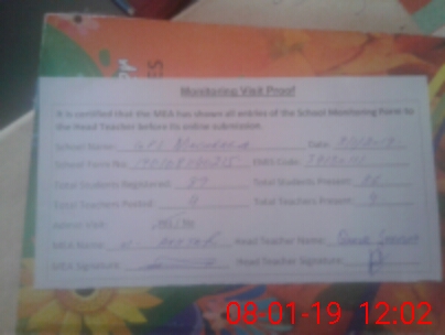 | Attendance Register | Head Teacher | MEA with School | Visit Proof |