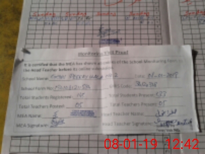 | Attendance Register | Head Teacher | MEA with School | Visit Proof |