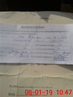 | Attendance Register | Head Teacher | MEA with School | Visit Proof |
