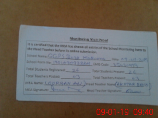 | EMIS Code: 35430999 | Name of School: GGPS DERA KATTU ANA | |||