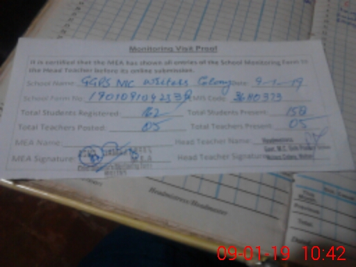 | EMIS Code: 36110373 | Name of School: GGPS MC WRITERS COLONY MULTAN | |||