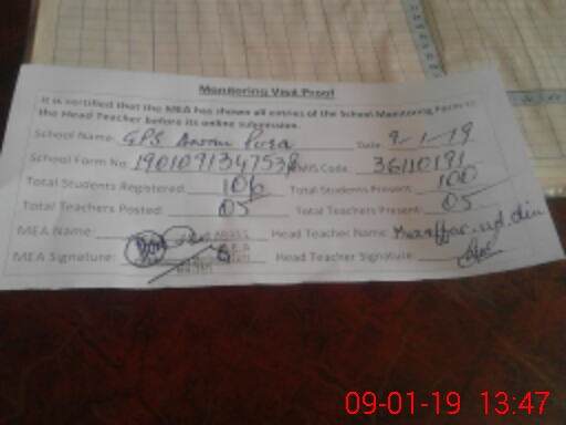 | Certified that this School was Inspected by the Undersigned MEA/DMO Today and the Information Stated Above is as Per Record. | |||||