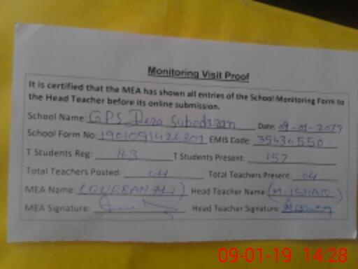 | EMIS Code: 35430550 | Name of School: GPS DERA SUBIDARAN | |||