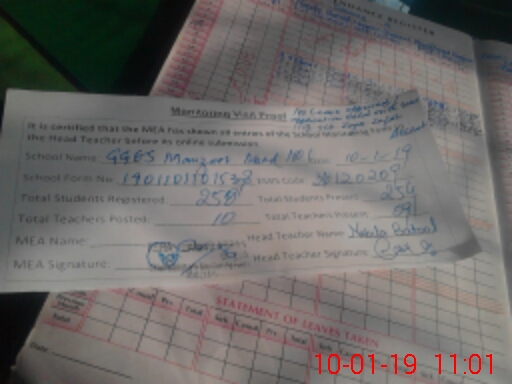 | Attendance Register | Head Teacher | MEA with School | Visit Proof |