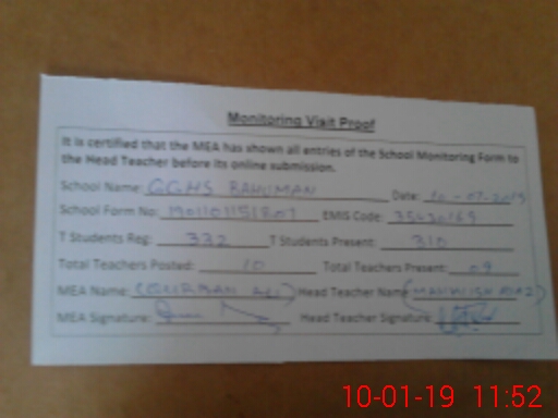 | Certified that this School was Inspected by the Undersigned MEA/DMO Today and the Information Stated Above is as Per Record. | |||||
