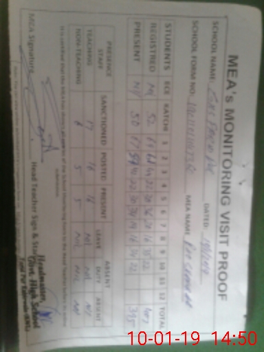 | Attendance Register | Head Teacher | MEA with School | Visit Proof |