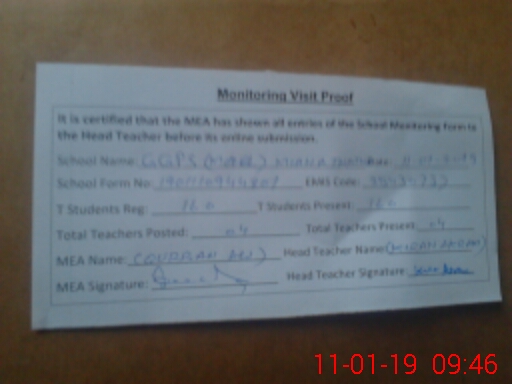 | Certified that this School was Inspected by the Undersigned MEA/DMO Today and the Information Stated Above is as Per Record. | |||||
