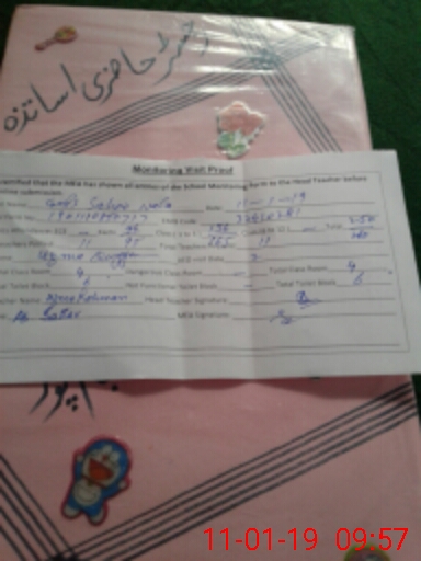 | School Visited by School Health & Nutrition Supervisor (No. of Visits) | 1 | Name1: | M Asif Mustafa | Name2: | |