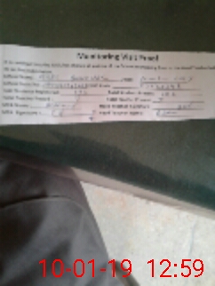 | Monitoring Date: 10-01-2019 | Start Time: 10-01-2019 12:25 PM | End Time: 10-01-2019 01:01 PM | Name of MEA: ZV**** | |