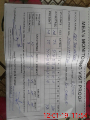 | Attendance Register | Head Teacher | MEA with School | Visit Proof |