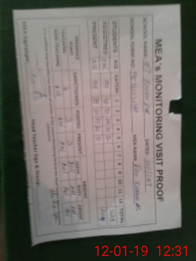 | Attendance Register | Head Teacher | MEA with School | Visit Proof |