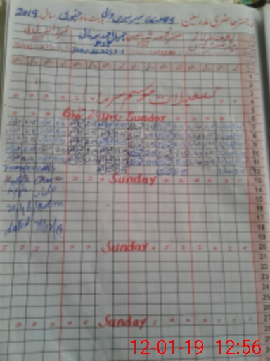 | CNIC | Full Name | Designation | R/C | Absence During Last Calender Month |