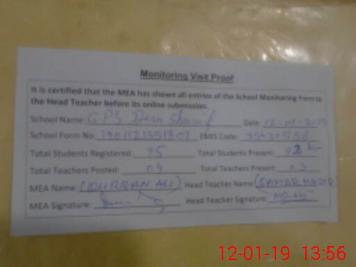| EMIS Code: 35430538 | Name of School: GPS DERA SHARIF WARN SKP | |||