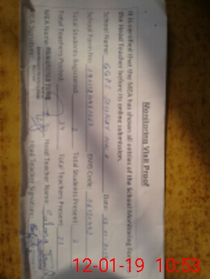 | Attendance Register | Head Teacher | MEA with School | Visit Proof |